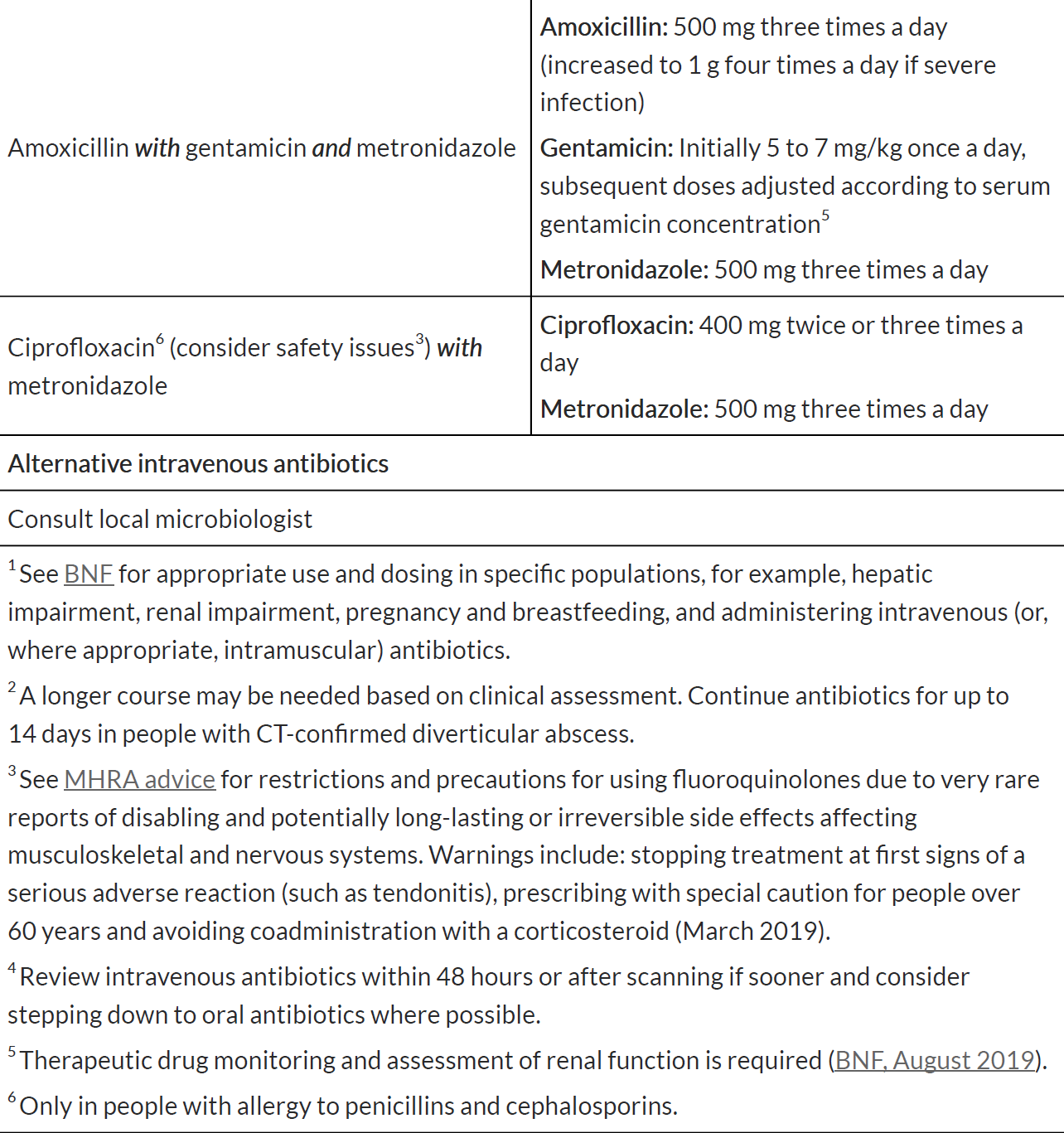 When prescribing an antibiotic for diverticular abscess, follow the advice in table below.