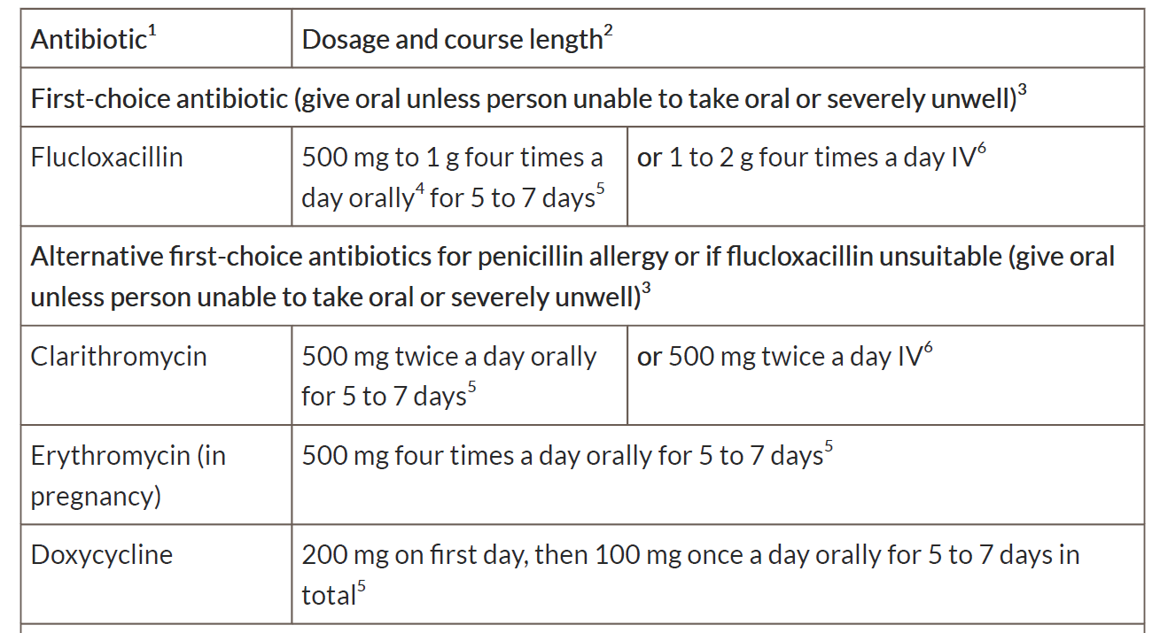 1. Cellulitis and erysipelas: antimicrobial prescribing. NICE guideline NG141. Published: 27 September 2019
