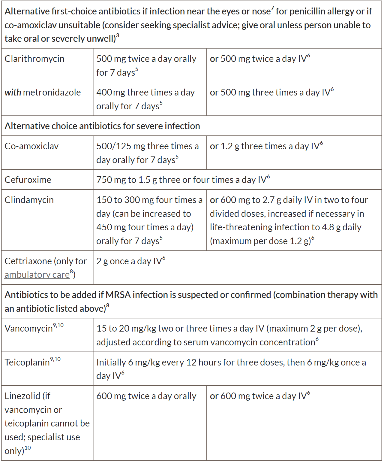 1See BNF for appropriate use and dosing in specific populations, for example, hepatic impairment, renal impairment, pregnancy and breastfeeding, and administering intravenous (or, where appropriate, intramuscular) antibiotics.