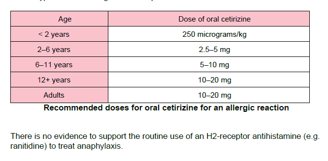 Once a patient has been stabilised, use a non-sedating oral antihistamine (e.g. cetirizine) in preference to chlorphenamine which causes sedation.